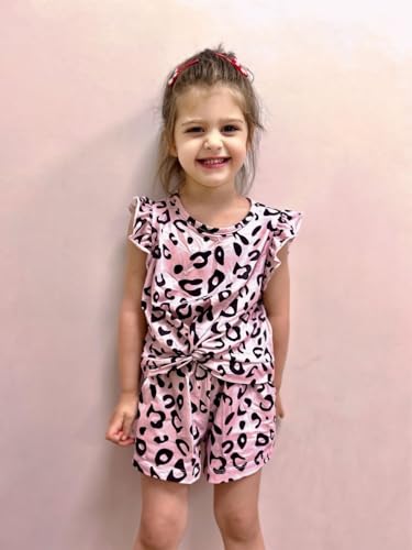 • UNIQUE DESIGN: Flutter Sleeve Design, Twist Knot Front Tops, easy to wear with shorts pants, and skirts. Breathable Shorts with Side Pocktes, so adorable Floral/Cow/Leopard print spring-summer clothes for your girls.