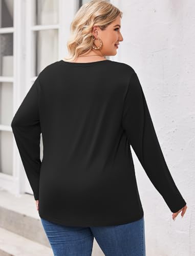IN'VOLAND Womens Plus Size Long Sleeve Shirts V Neck Basic Tee Tops Loose Fit Fall Outfits for Women 1X-5X 1
