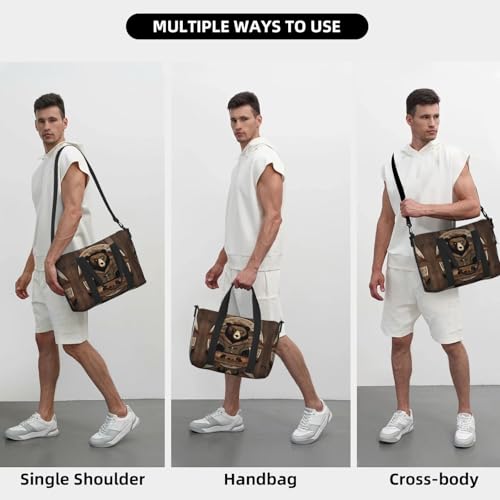 HOT ! Phayah Rustic Bear Crossbody Travel Bag Overnighter Duffel Bags Carry On Size Ideal For School Or Overnight Travel Bag