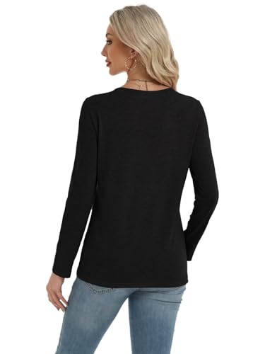 • Design:Long sleeve shirts for women with round neck and cool metal round. Easy layer piece for any season. Basic tee top for all seasons.