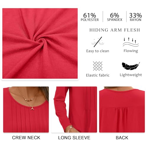 Anyhold Women's Fall Long Sleeve Tops Dressy Casual Shirts Crew Neck Tunics Pleated Blouses to wear with leggings 4