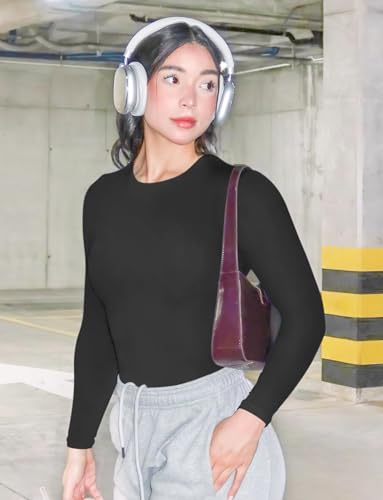YEOREO Long Sleeve Shirts for Women y2k Tops Double Lined Basic Tee Crew Neck Going Out Sweeney Workout Undershirt 2
