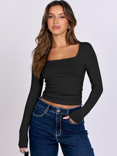 More information about ANRABESS Women Long Sleeve Shirts Crop Tops Double Lined Square Neck Tight Fitted Going Out Basic Tee 2025 Y2K Fall Outifis
