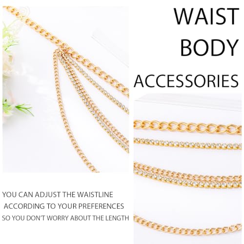 Rhinestone Waist Chain Gold Layered Waist Chains Crystal Belly Chain Tassels Body Jewelry for Women 5