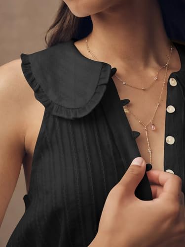Womens Peter Pan Collar Sleeveless Shirt Summer Eyelet Cotton Button Down Tank Tops Casual Ruffle Flowy Blouse Vest 1