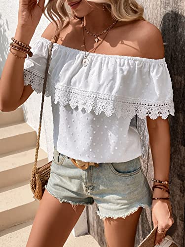 MakeMeChic Women's Off The Shoulder Tops Short Sleeve Loose Lace Summer Top 1