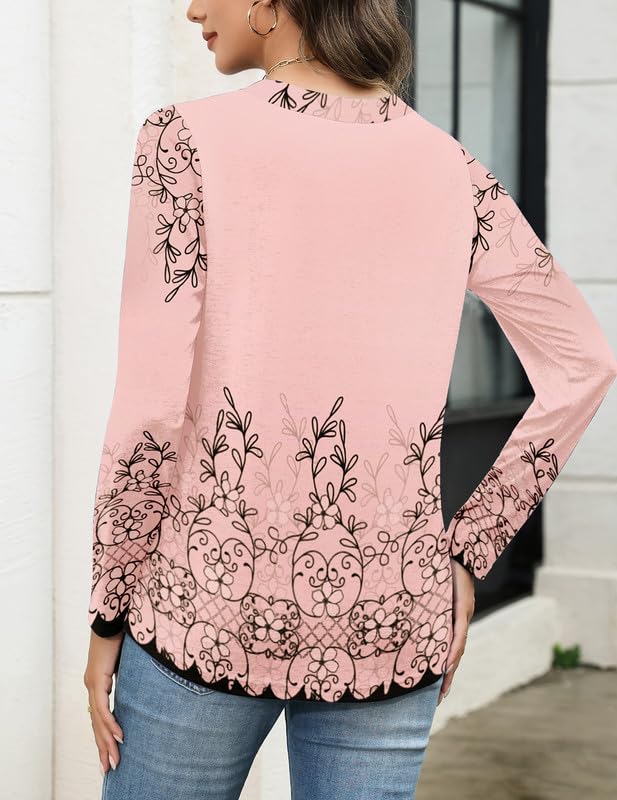 Long Sleeve Shirts for Women Henley V Neck Tops Fashion Pleated Dressy Blouses Fall Trendy Tunic 2025 2