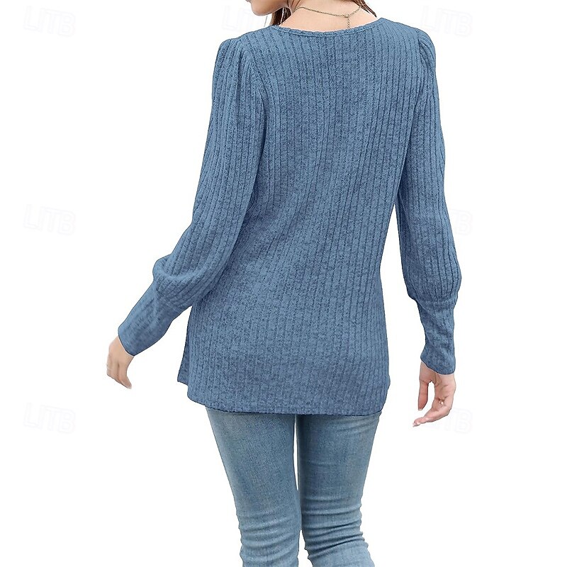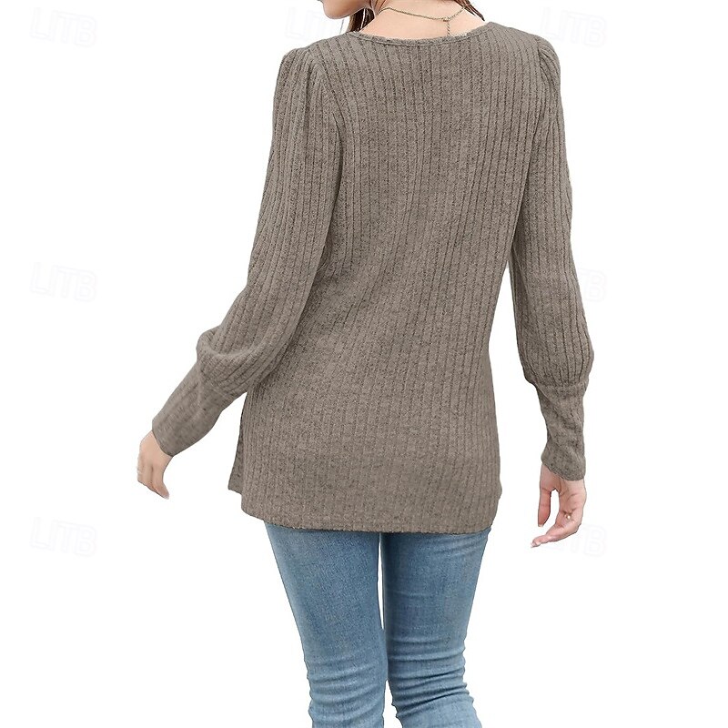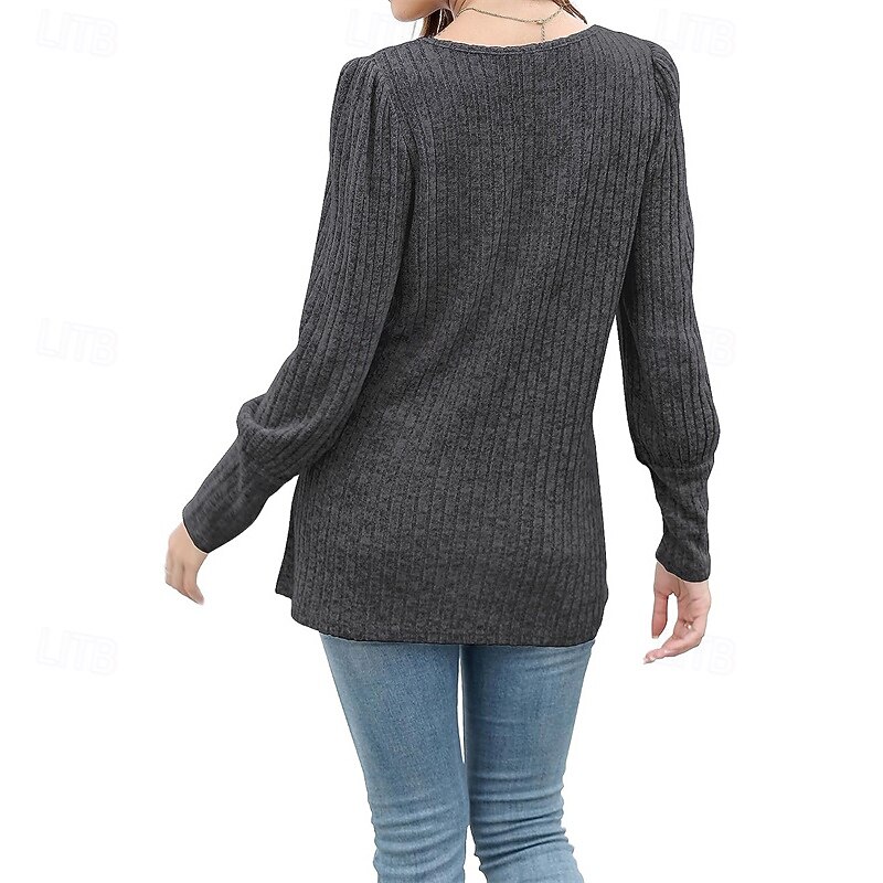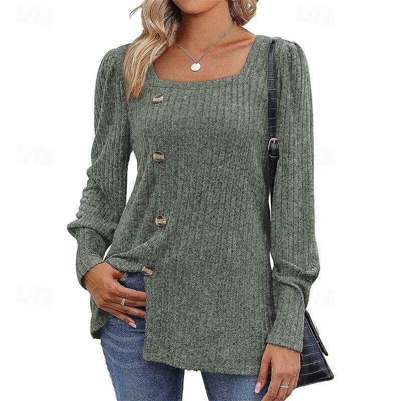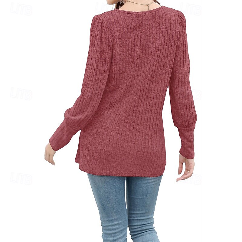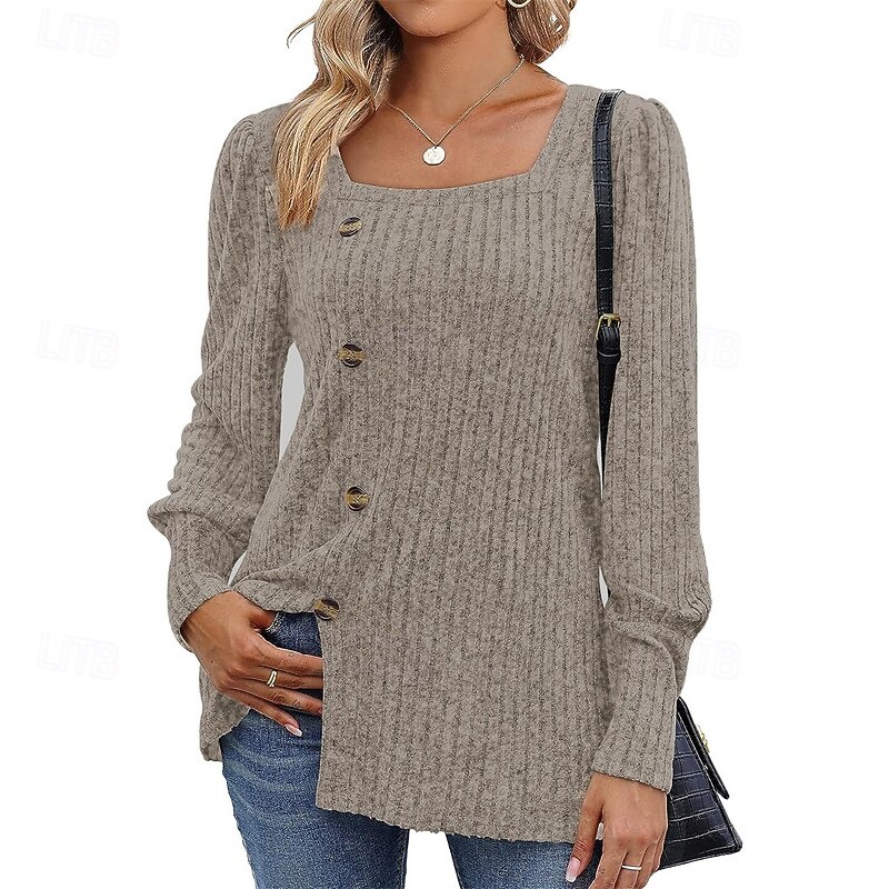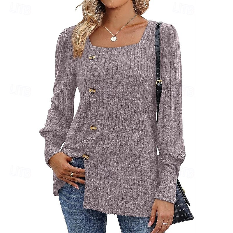 More information about Women's Texture Blouse T Shirt Tee Top Plain Fashion Modern Long Sleeve Square Neck Regular Tops Daily Going out Buttons Maroon Black Red Light Brown Blue Spring Fall