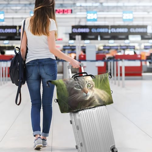 Large Travel Duffel Bag, Kitten Grass Sports Tote Gym Bag, Shoulder Weekender Overnight Bag for Women Men, Carry On Luggage with Toiletry Bags