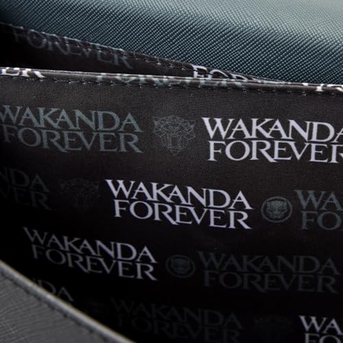 • The Loungefly Black Panther: Wakanda Forever Crossbody Bag is made of vegan leather (polyurethane).