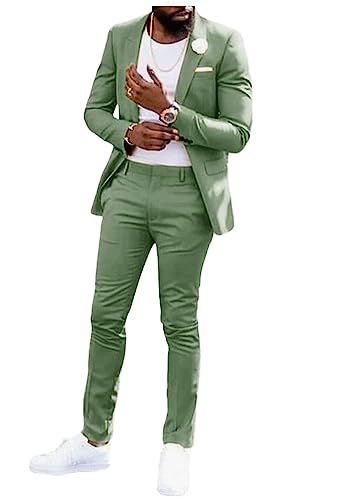 Mi Bo Tong 2 PC Slim Fit Mens Suit for Wedding One Button Jacket Pants Wedding Suit Groomsmen Tuxedos Prom Suit 2