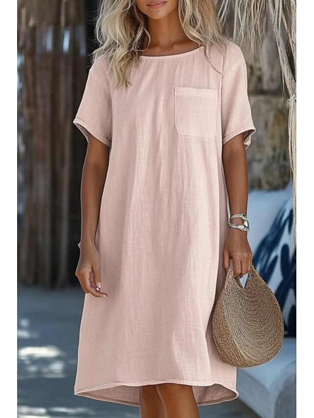 More information about Women's Mini Dress Cotton Linen Dresses Cotton Linen Dress Fashion Classic Modern Daily Going out Weekend Regular Fit Plain Short Sleeve Crew Neck White Pink Light Blue Summer