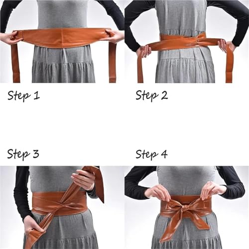 Woman Wide Leather Belt Obi Belt Self Tie Cinch Belt Wrap Around Bowknot Waistband Bright Color For Dress 1 piece(Black) 6