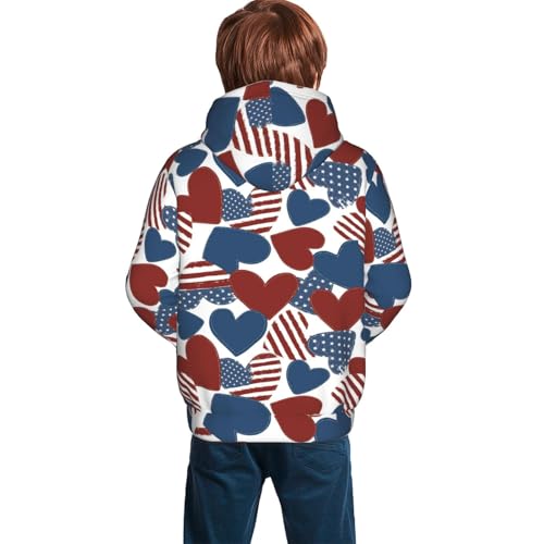 American Flag Heart Symbol Kids Pullover Hoodies Boys Sweatshirts Girls Athletic Clothes with Pocket 4