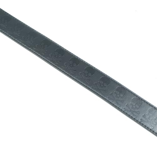 Skull and Bones Leather Belt Strap and Metal Buckle 1.5" Wide with Snaps - Rock Punk Cross Pirate Jolly Roger 1