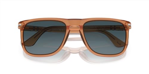 • FRAME FEATURES: PO3336S sunglasses feature an aviator, transparent brown frame with light blue gradient dark blue lenses and iconic keyhole bridge.