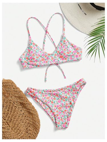 SHENHE Women's Floral Bikini Set 2 Piece Criss Cross Tie Back Low Rise Boho Swimsuits 2