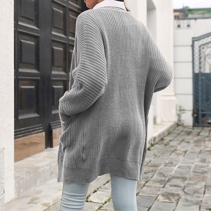 More information about Women's Cardigan Casual Solid Color Chunky V Neck Pocket Knitted Long Sleeve Long Tops Knit Daily Holiday Going out Wine Gray Fall Winter