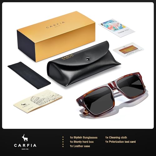 • Dedicated to lenses - protecting your vision is CARFIA's goal. Our TAC lenses have perfect clarity, filter all kinds of polarized light, and block glare. Not only 100%UVA and UVB protection, but also let you see the vivid color of life