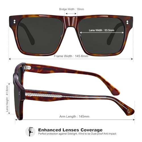 More information about CARFIA Modern Sunglasses for Men Polarized UV400 Protection Flat Large Wrap Square Acetate Driving Glasses