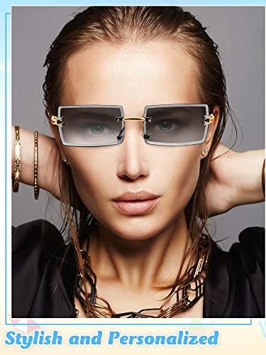 Weewooday 10 Pair Rimless Sunglasses Rectangle 90s Retro Trendy Y2k Sunglasses Frameless Square Glasses Eyewear for Men Women 7