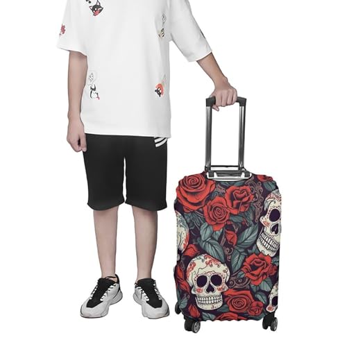 in-demand ! Sugar Skulls And Red Roses Elastic Luggage Cover Suitcase Protector for 19-32 Inch Suitcases | Universal Stretchable Travel Bag Cover | Anti-Scratch, Washable with Zipper Closure S