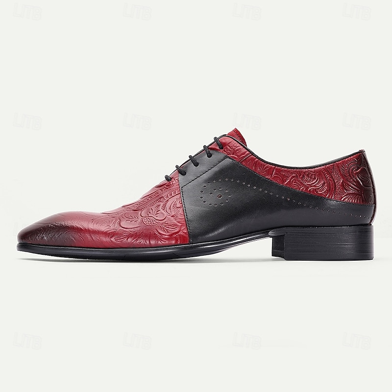 HOT ! Men's Premium Cowhide Leather Oxfords, Classic Red with Brogue Detailing, Suitable for Business and Formal Events