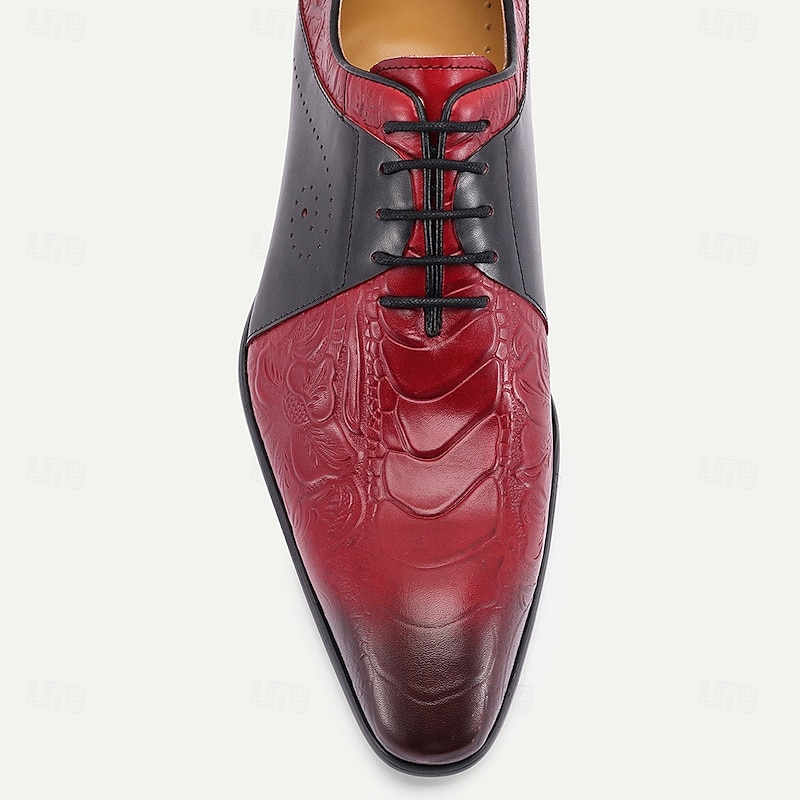 Men's Premium Cowhide Leather Oxfords, Classic Red with Brogue Detailing, Suitable for Business and Formal Events 6
