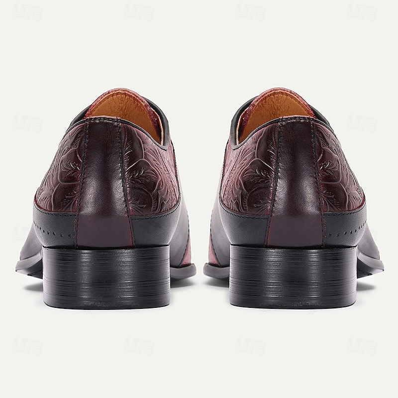 Men's Premium Cowhide Leather Oxfords, Classic Red with Brogue Detailing, Suitable for Business and Formal Events 1