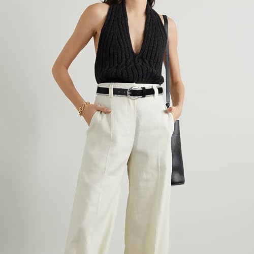 HOT ! Women's Black Leather Belt with Silver Buckle and Pearl Embellishment - Perfect for Pants and Dresses