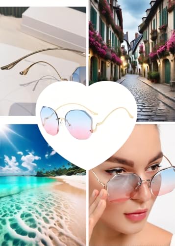 Chinshwehaw 2025 Designer Sunglasses Women - Frameless Geometric Cat Eye, Gold Metal Frame & Blue Pink Gradient Lens, UV400, Lightweight Luxury Sun Glasses for Driving, Beach, Street Style 7
