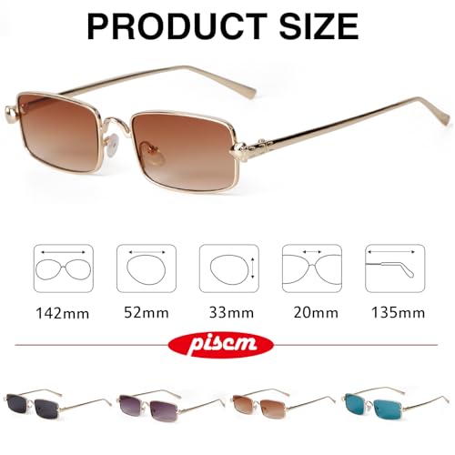 • RETRO SMALL NARROW RECTANGLE FRAME - These retro rectangle sunglasses for women men with small y2k narrow metal frame are keeping up closely with the latest fashion trend, offering a modern and chic look.These retro gold frame sunglasses can match with various facial shapes