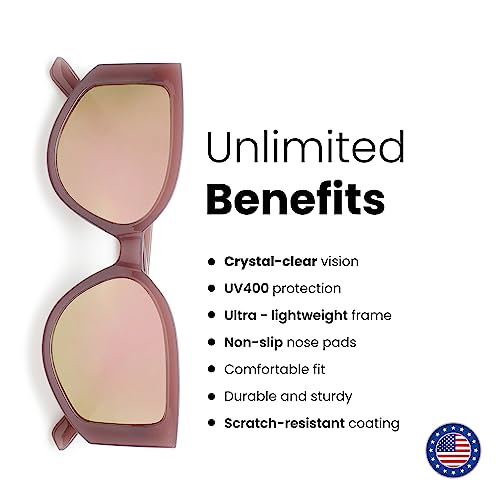 • COMPLETE UV400 PROTECTION - Our pink purple cat eye mirrored sunglasses women offer 100% UV400 protection, blocking harmful UVA and UVB rays. Premium lenses reduce glare and protect your eyes from harmful sunlight. ADD TO CART with confidence and enjoy the outdoors safely