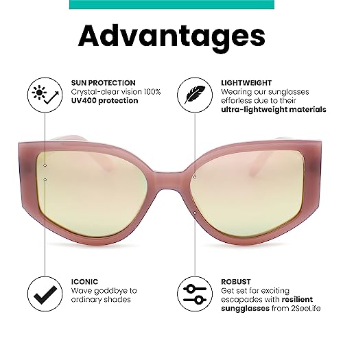 HOT ! 2SeeLife Oversized Mirror Cat Eye Sunglasses for Women with Complete Sun-Protection - Durable & Sturdy Womens Sunglasses