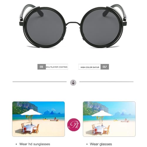 More information about HMRGLMIE-Steampunk Sunglasses Women Round Glasses Goggles Men Side Visor Circle Lens Vintage Retro Style Punk Oculos De Sol