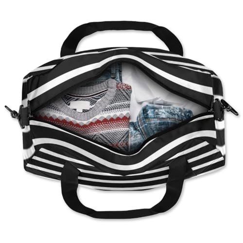 Black and White Stripe Kids Duffle Bag Boys Girls Small Sport Dance Gym Bag for Overnight Travel Weekender Carry On 7