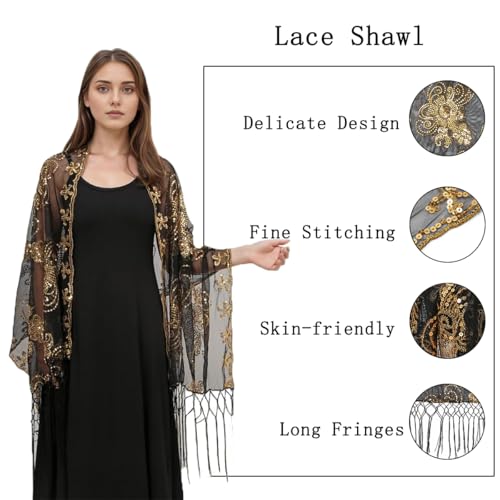 LMVERNA 1920s Sequined Flower Shawl Wraps Fringed Evening Cape Wedding Bridal Shawl Scarf for Evening Dresses Party 3