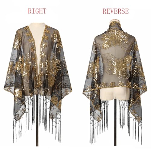 More information about LMVERNA 1920s Sequined Flower Shawl Wraps Fringed Evening Cape Wedding Bridal Shawl Scarf for Evening Dresses Party