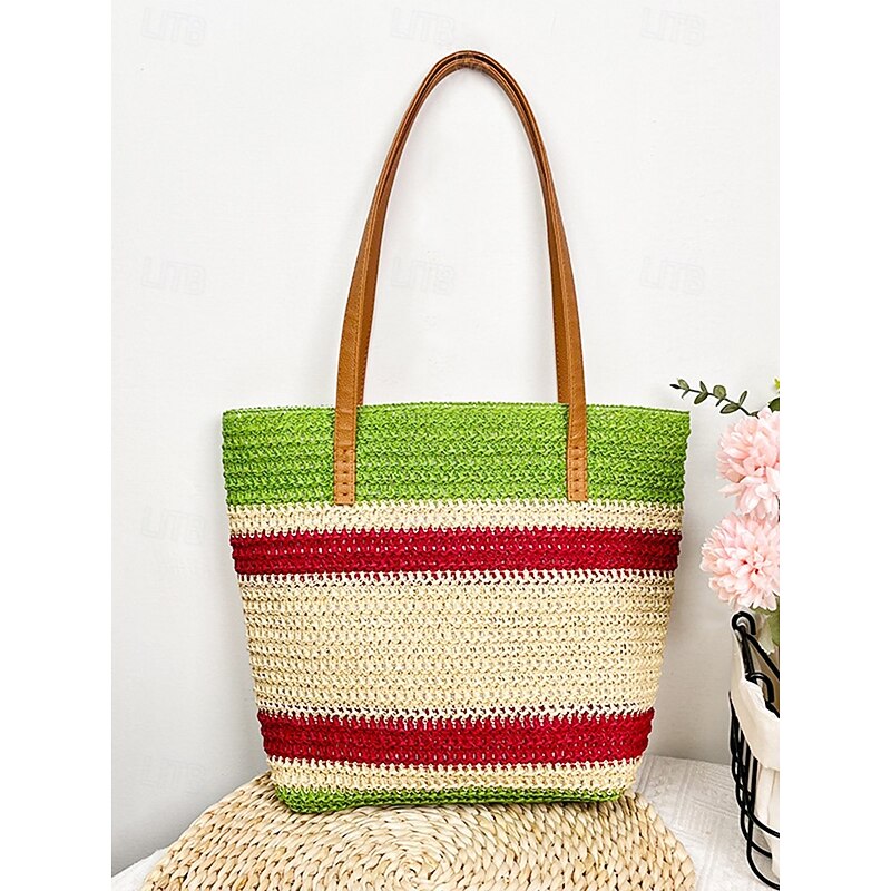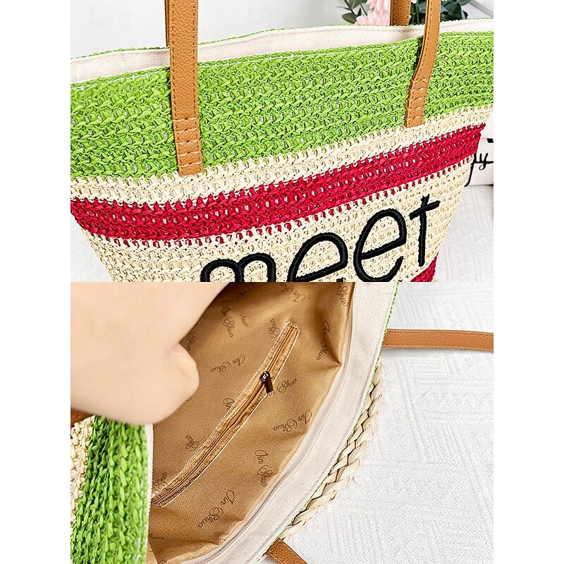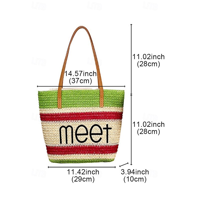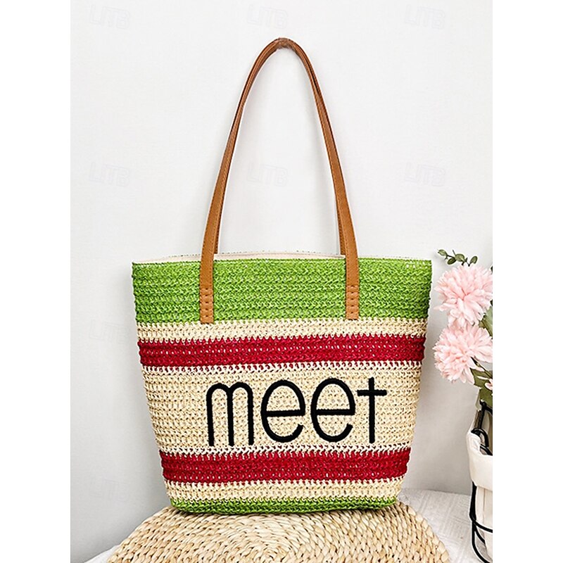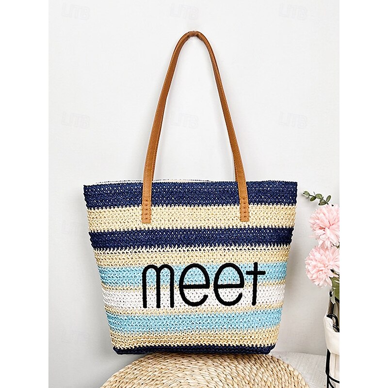 HOT ! Women's Colorful Summer Tote Bag with "Summer" Print - Stylish Crochet Beach Tote Bag for Vacation and Poolside