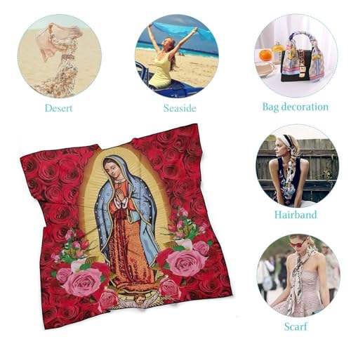 Our Lady of Guadalupe Hair Bandana Virgin Mary Silk Scarf Kerchief Square Scarf Wrap Neck Scarf for Women 5