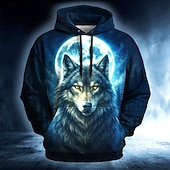 More information about Men's Moon Wolf 3D Hoodie Sweatshirt Cool Daily Crew Neck Club Streetwear Blue Purple Drawstring Fall Winter Designer