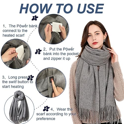 Heated Scarf for Women Rechargeable,Intelligent Electric scarf, USB Mini Cold Weather scarf with pộwệr bẫnk with 3 Heating Levels, Auto Off Feature for Men,Girls 6