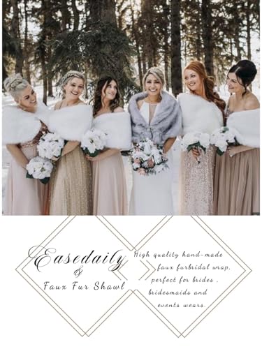 More information about EASEDAILY Women's Faux Fur Shawls and Wraps Wedding Cape Stole Winter Cover Up with Brooch for Bride