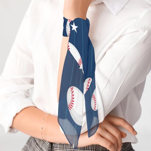 Tavisto Baseball Stripe Square Scarf for Women Lightweight Hair Scarf Headbands Neck Scarf Spring Summer Hair Wrap Square Silk Navy Blue Head Scarves for Women 23.6 x 23.6 Inch 4