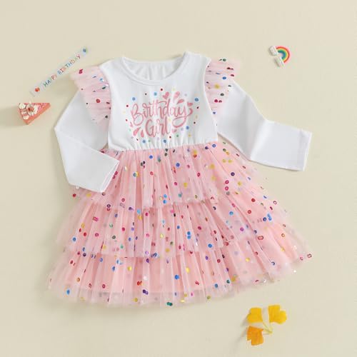 • Design :Princess birthday dress for girls ,baby girl birthday dress ,baby girl cake smash outfits,infant baby girl birthday tutu dress ,round neck ,ruffle sleeve ,Birthday Girl letter print dress ,colorful glitter dots layered mesh dress for girls ,toddler girl birthday outfit ,1st birthday girl outfit ,make your baby girl more adorable and charming
