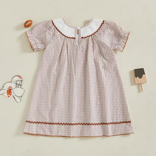 Honganda Toddler Baby Girl Sister Matching Outfit Summer Rugby Smocked Romper Little Girl Plaid Football Dress 7