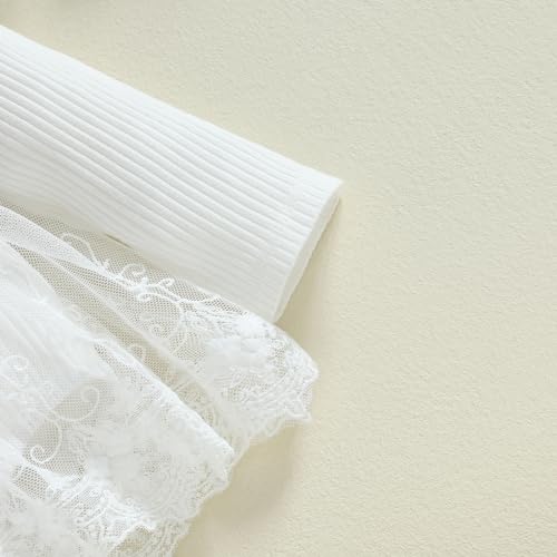 • Design: The baby girls' clothing, infant girl clothes, baby girl romper dress with a waist big bow, flared mesh skirt, round neck, long sleeve, shoulder ruffled trim, delicate lace floral pattern at the hem and 3D flowers trim at the front makes kids looks lively and eye-catching.