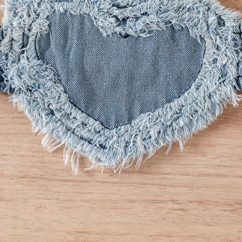 2PCS Infant Baby Girl Raw Edge Heart Shape Strap Crop Tops + Heart Ripped Denim Shorts Clothes Sets 4