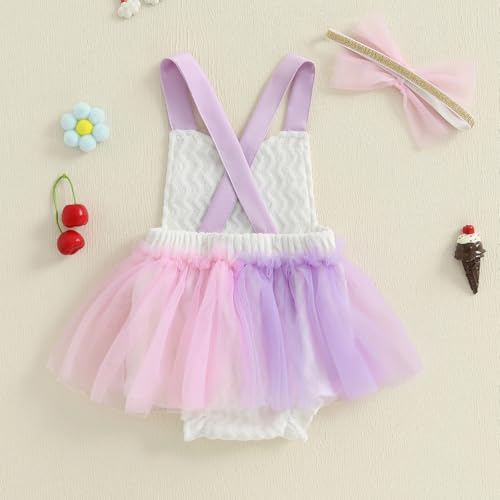 • [Feature]- Newborn baby girl summer outfit, sleeveless romper dress, ice cream embroidered, stars mesh tulle skirt, matching bow headband, infant girl summer clothes, Independence day baby girl clothes, first 4th of July baby girl outfit, ice cream clothes for baby girls, memorial day baby girl clothes, backless design, perfect for summer
