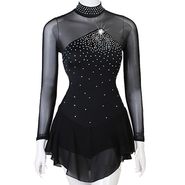 Figure Skating Dress Women's Girls' Ice Skating Dress Outfits Black Open Back Patchwork Mesh Spandex High Elasticity Practice Professional Competition Skating Wear Handmade Crystal / Rhinestone 1